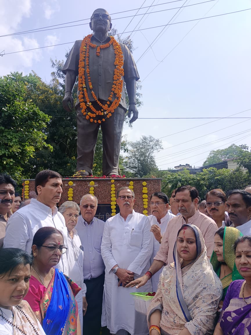 प्रतिमा पर पार्टी नेताओं और अनुयायियों की जुटी भीड़