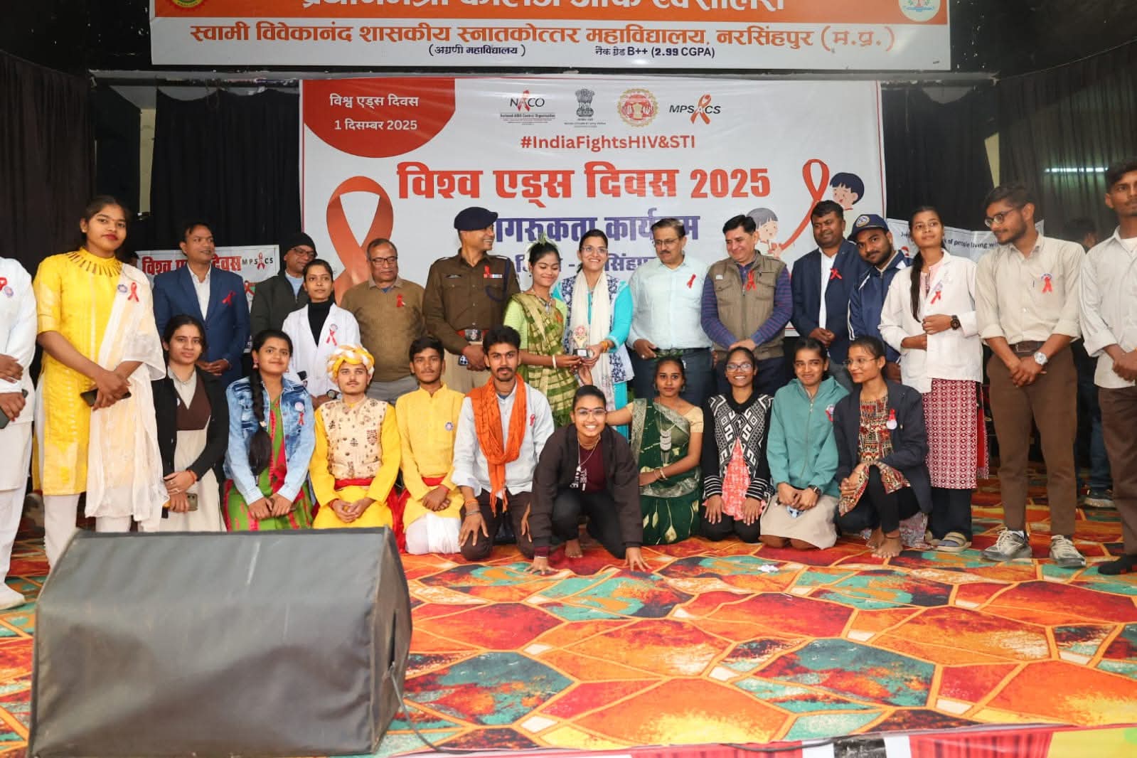 कलेक्टर श्रीमती रजनी सिंह ने पीजी कॉलेज नरसिंहपुर के ऑडिटोरियम में आयोजित कार्यक्रम का शुभारंभ दीप प्रज्जवलन कर किया। कलेक्टर एवं अन्य अतिथियों ने एचआईव्ही/ एड्स जागरूकता विषय पर आयोजित रंगोली, भाषण, चित्रकला, निबंध प्रतियोगिताओं के विजेताओं और एचआईव्ही/ एड्स के क्षेत्र में बेहतर कार्य करने वाले अधिकारी- कर्मचारियों को पुरस्कृत किया।