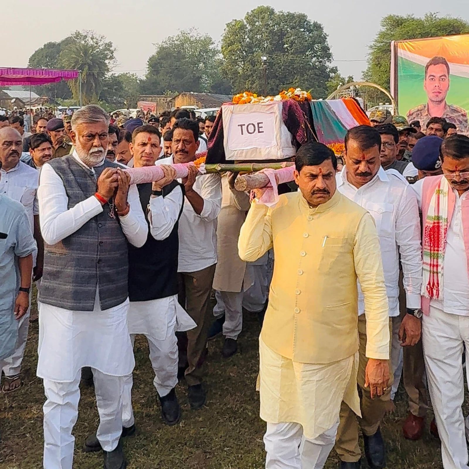 कार्यक्रम के पश्चात नक्सल विरोधी अभियान के दौरान अपने अदम्य साहस, अद्भुत शौर्य और वीरता का परिचय देते हुए वीरगति को प्राप्त हुए मध्यप्रदेश हॉक फोर्स के निरीक्षक, बोहानी (नरसिंहपुर) के लाल श्री आशीष शर्मा जी की अंतिम यात्रा में शामिल होकर उन्हें श्रद्धांजलि अर्पित की गई।