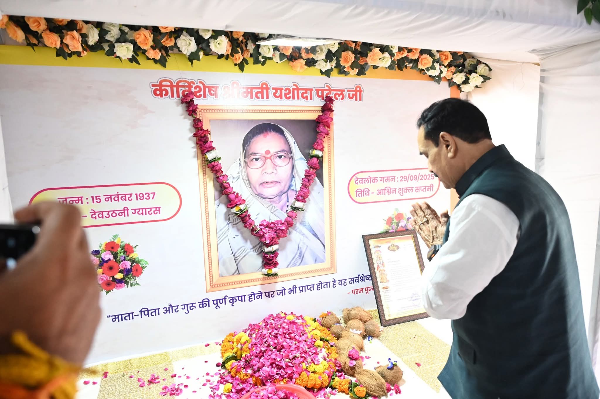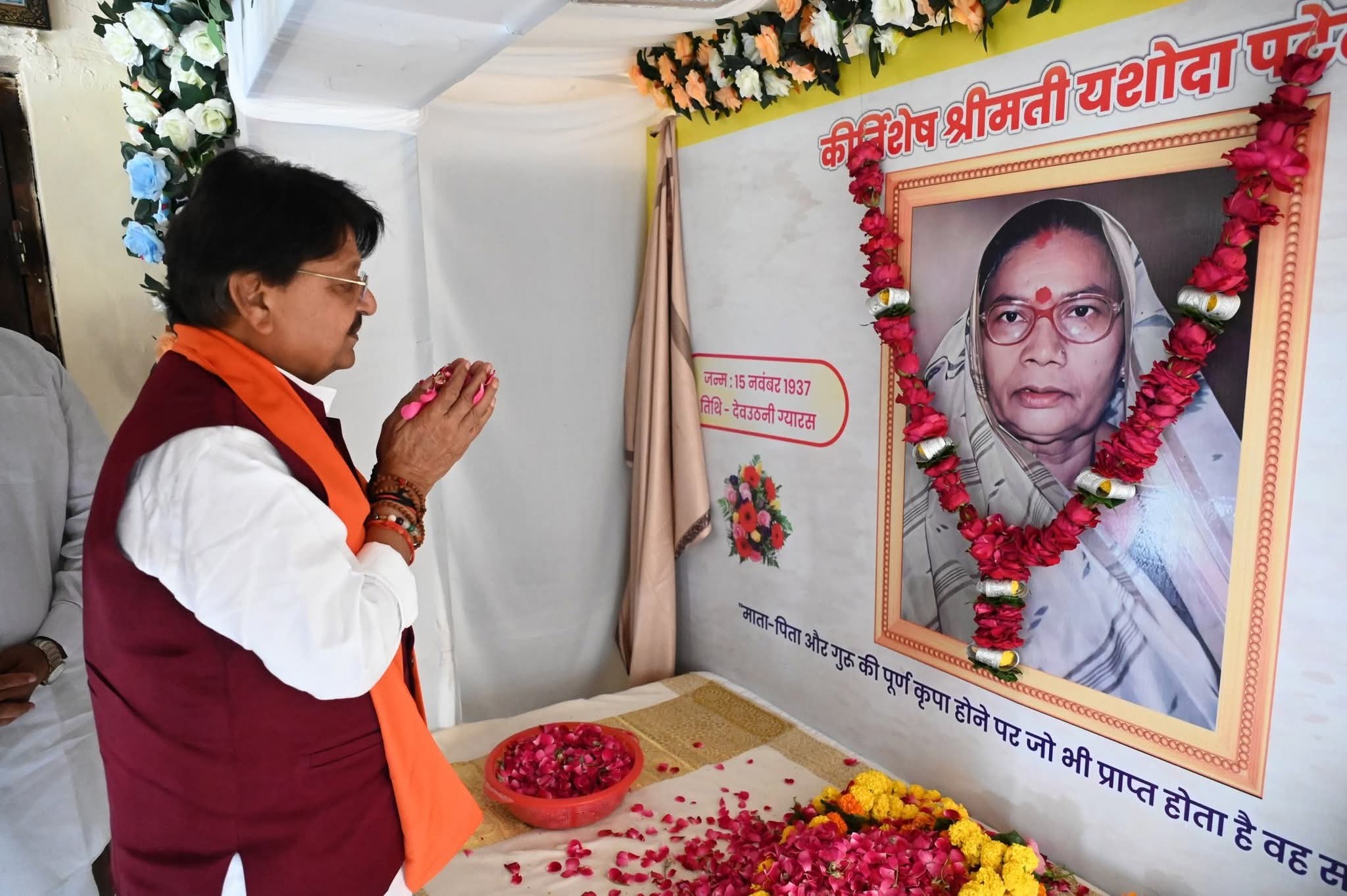 : मंत्री कैलाशविजयवर्गी आए श्री धाम गोटगांव। प्रहलाद पटेल का संदेश मेरी पूजनीय माँ श्रीमती यशोदा बाई पटेल जी के देवलोकगमन उपरांत गोटेगाँव (श्रीधाम, नरसिंहपुर) स्थित निज निवास आकर मंत्रिमंडल के साथी और मेरे अग्रज मा. Kailash Vijayvargiya जी ने माताजी के छायाचित्र पर माल्यार्पण कर श्रद्धांजलि दी। इस शोक की घड़ी में संवेदना व्यक्त करने के लिए परिवार की ओर से आपका आभार।