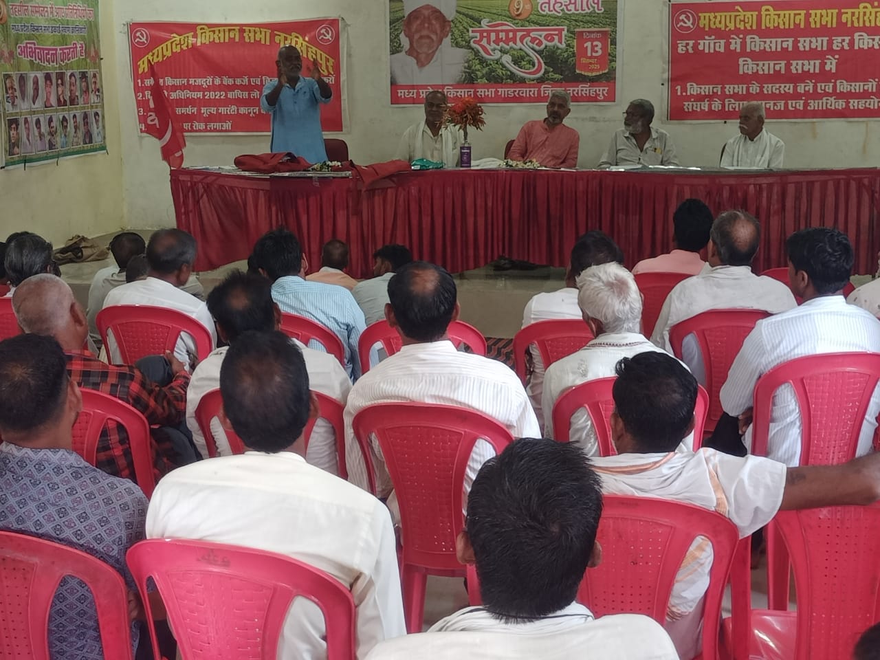 : सादर प्रकाशनार्थतहसील सम्मेलन संपन्न , लीलाधर अध्यक्ष, देवेंद्र वर्मा महासचिव चुने गएमध्य प्रदेश किसान सभा का 9वा तहसील सम्मेलन भगवतसिंह उपरारिया नगर पचामा में 13सितंबर 2025को मंगलभवन में श्री भावसिंह पटेल , राजा साहब सरपंच पचामा एवं द्वारका प्रसाद उपरारियाकेअध्यक्षमंडल एवं प्रदेश महासचिव अखलेश यादव एवं प्रदेश उपाध्यक्ष रामनारायण कुरारिया के मुख्य आतिथ्य में सम्पन्न हुआ।सम्मेलन की शुरुआत से पूर्व अखिल भारतीय किसान सभा का झंडा ग्राम इकाई पचामा के अध्यक्ष जगदीश मुहरिया द्वारा फहराया गया एवं एक शोक प्रस्ताव पेश किया जिसमें कामरेड सीताराम येचुरी सहित किसान आंदोलन में 700से अधिक किसानों की शहादत के साथ देश में अपने हक के लिए संघर्ष में शहीद हुए साथियों को 2 मिनट का मौन रखते हुए शोक श्रद्धांजलि दी गई।सम्मेलन की शुरुआत मध्य प्रदेश किसान सभा के प्रदेश महासचिव अखलेश यादव ने उद्घाटन भाषण में किसान सभा के इतिहास को रखते हुए बताया कि किसान सभा का गठन 11अप्रैल 1936को स्वामी सहजानंद सरस्वती की अध्यक्षता में स्वतंत्रता प्राप्ति के पूर्व हुआ और किसान सभा ने स्वतंत्रता आंदोलन में अपनी कुर्बानियां दी और आज 1करोड़ 54लाख सदस्यता बाला संगठन है जो आज देश के कोने कोने में फैला हुआ सबसे बड़ा किसान संगठन है, सम्मेलन में नवनियुक्त कमेटी के सामने सरकार की जनविरोधी, किसान विरोधी नीतियां अंग्रेजों से ज्यादा शोषण दमन कर रही हैं उनसे संघर्ष का समय है। आगे महासचिव करणसिंह अहिरवार ने सचिव रिपोर्ट रखी जो विगत 3वर्ष के आंदोलन प्रदर्शन और कमियों को रखा गया, सचिव रिपोर्ट पर 13साथियों ने बहस में हिस्सा लिया। उसके बाद नई कमेटी का प्रस्ताव रखा गया जिसमें 25सदस्यीय तहसील समिति रखने सहमति बनी जिसमें 21नाम प्रस्तावित किए गए शेष 4 रिक्त रखे गए जिनका सम्मेलन में सर्वसम्मति से हाथ उठाकर पारित किया।21सदस्यीय कमेटी ने सर्वसम्मति से अध्यक्ष लीलाधर वर्मा, महासचिव देवेंद्र वर्मा एवं कोषाध्यक्ष लालसाहब वर्मा चुने गए। सम्मेलन में 5उपाध्यक्ष एन एस पटेल,जगदीश पटेल, भूपेंद्र पटेल गरीबदास चौधरी, भोजराज पटेल, एवं 5सह सचिव के लिए नरेंद्र वर्मा, रामसिंह वर्मा, करणसिंह अहिरवार, तुलसीराम श्रीवास, कालूराम वर्मा चुने गए। कार्यकारणी सदस्यों में भैरो प्रसाद विश्वकर्मा, छोटेलाल उमरे, विश्राम वर्मा, रामनारायण पटेल, पवन ठाकुर, यश कुमार वर्मा, सुखलाल ठाकुर, बृजकिशोर पटेल को सर्वसम्मति से चुने गए। नवनिर्वाचित कमेटी ने वर्ष के लिए कार्यभार लिए। कमेटी गठन उपरांत मध्य प्रदेश किसान सभा के प्रदेश उपाध्यक्ष रामनारायण कुरारिया ने अपने समापन भाषण में नई कमेटी को देश प्रदेश की किसान मजदूर विरोधी नीतियां लागू होने से उत्पन्न चुनौतियों 
