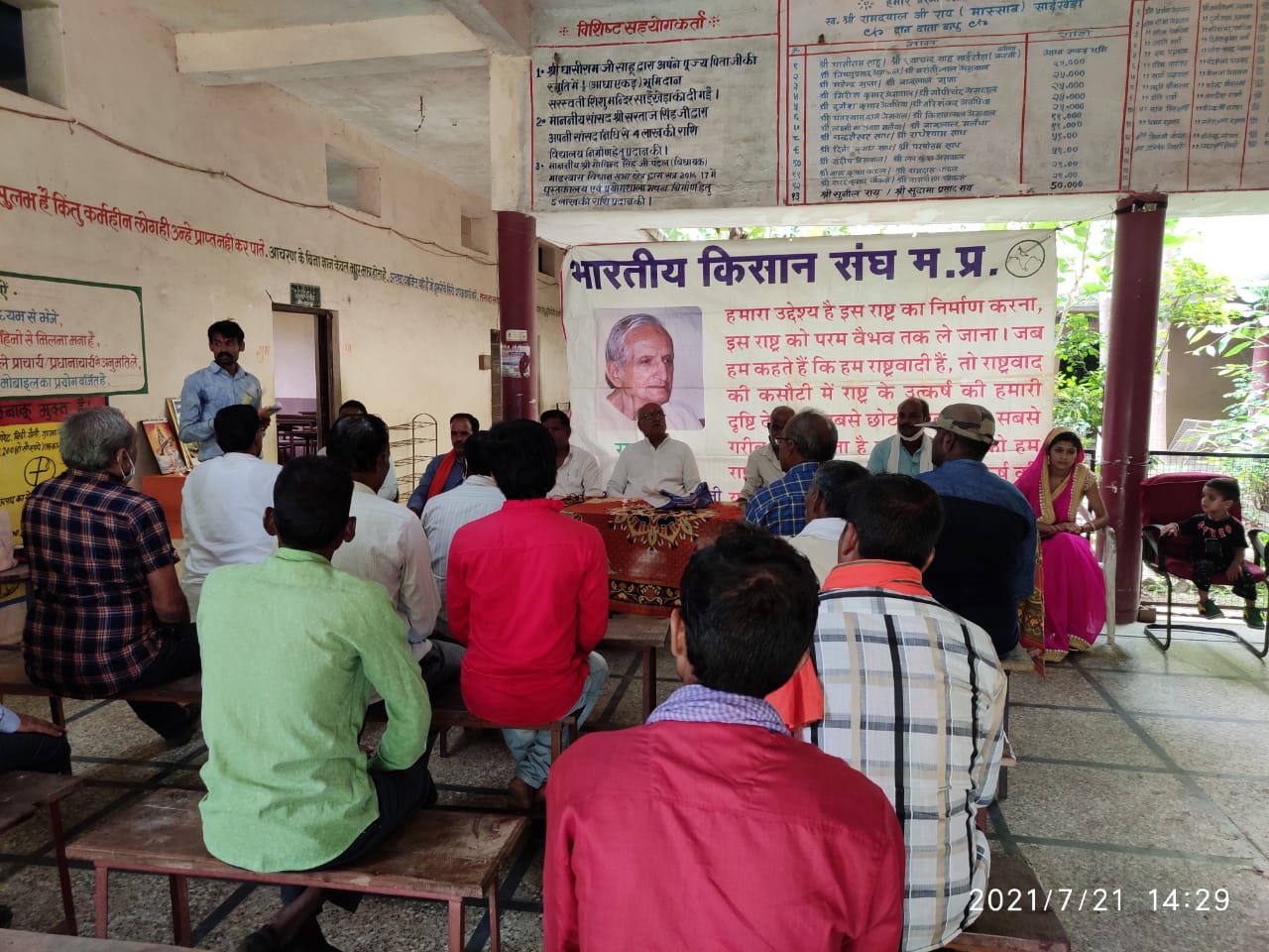 : नरसिंहपुर जिला आज नगर साईं खेड़ा में 21/7 /2021 को भारतीय किसान संघ नवीन तहसील कार्यकारिणी का गठन सरस्वती शिशु मंदिर साईं खेड़ा में रखी गई बैठक में जिला एवं संभाग पदाधिकारियों की उपस्थिति में सर्वसम्मति भारतीय किसान संघ तहसील कार्यकारिणी का किया गया गठन निर्वाचन अधिकारी संभागी सदस्य तेज तोमर कार्यक्रम अध्यक्ष आदरणीय विजय जी मालपानी जिला मंत्री राकेश खेमरिया जिला उपाध्यक्ष साहब सिंह लोधी जिला सदस्य श्री राम चौधरी आदि मंचासीन अतिथियों ने भगवान बलराम के पूजन अर्चन कर बैठक का शुभारंभ किया कार्यक्रम संचालन युवा वाहिनी जिला संयोजक नितिन तिवारी ने किया एवं निर्वाचन अधिकारी ने सर्वसम्मति से तहसील अध्यक्ष साईं खेड़ा श्री राजेंद्र शर्मा तहसील मंत्री सुरेंद्र राजपूत महिला तहसील संयोजिका रजनी पटेल तहसील उपाध्यक्ष मनोज पटेल अतर सिंह भोपाल सिंह बाबूलाल पटेल तहसील प्रभारी मुन्नीलाल राजपूत तूमडा तहसील सह मंत्री अनुज पचौरी एवं लक्ष्मीनारायण जी विलथरिया कार्यकारिणी सदस्य रेवा शंकर जी कटारे पहलाद राजपूत भगवान सिंह पीपरपानी नगर अध्यक्ष माखन अग्रवाल नगर उपाध्यक्ष प्रीतम विश्वकर्मा तहसील गाडरवारा अध्यक्ष श्री महेश तिवारी आदि पदाधिकारियों की नियुक्ति की घोषणा हुई क्षेत्र की समस्त ग्राम इकाइयों से पधारे हुए ग्राम इकाई अध्यक्ष मंत्री जिला संभाग पदाधिकारी एवं किसान बंधुओं का नवनियुक्त कार्यकारिणी ने आभार व्यक्त करते हुए कार्यक्रम का समापन हुआ